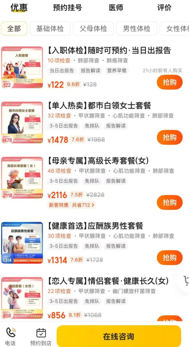 每个套餐都经过精心设计,精准满足不同年龄段、不同性别、不同职业人群的个性化健康需求。