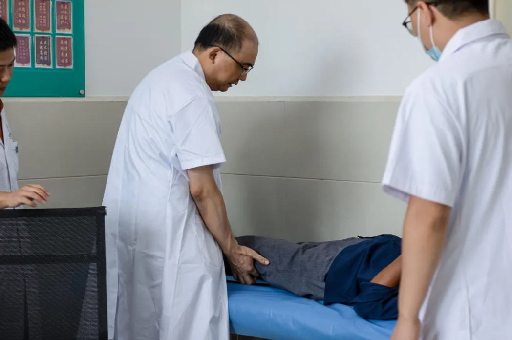 (图:程飚主任在长征骨科医院为群众坐诊)
